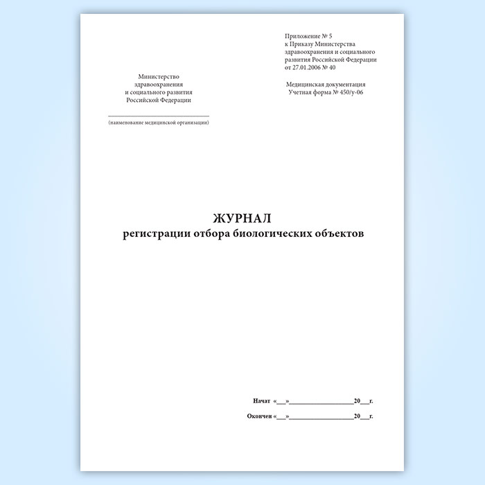 Журнал регистрации отбора биологических объектов (форма 450у-06) в Сочи купить