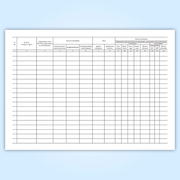 Журнал учета серологических исследований на паразитарные заболевания в Сочи купить