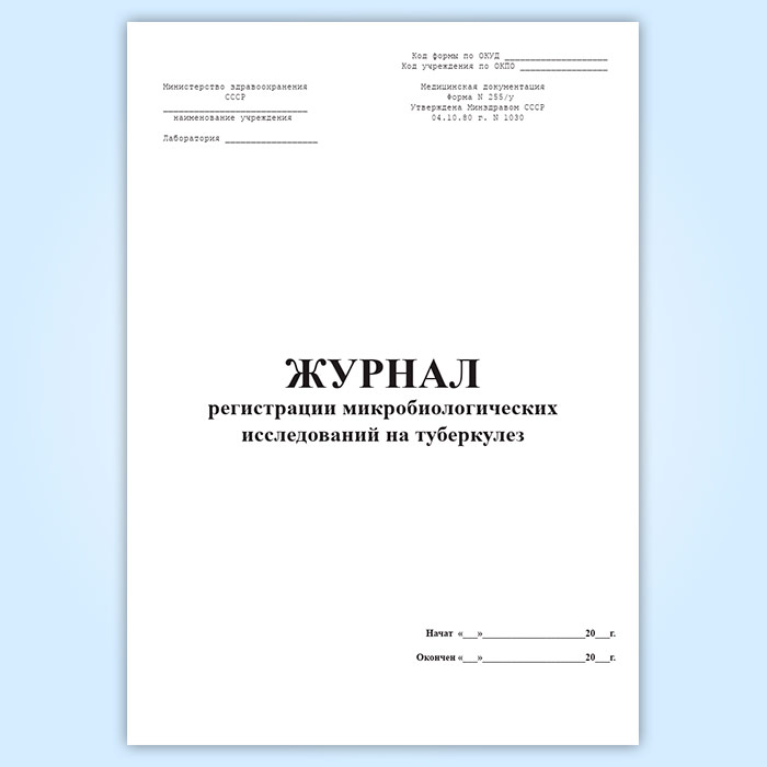 Журнал регистрации микробиологических исследований на туберкулез (форма 255/у) в Сочи купить