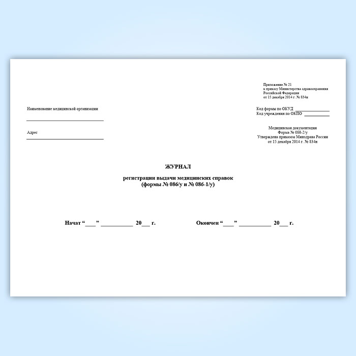Журнал регистрации выдачи медицинских справок (форма № 086-2/у) в Сочи купить