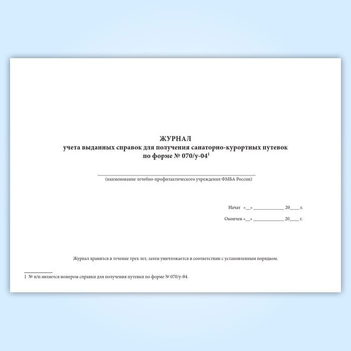 Журнал учета выданных справок для получения санаторно-курортных путевок (форма № 070/у-04) в Сочи купить