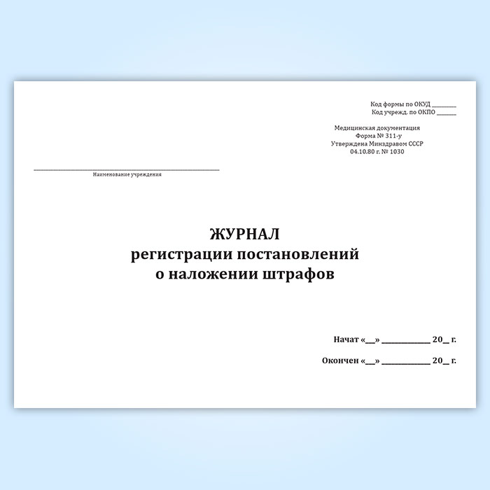 Журнал регистрации постановлений о наложении штрафов (форма 311-у) в Сочи купить