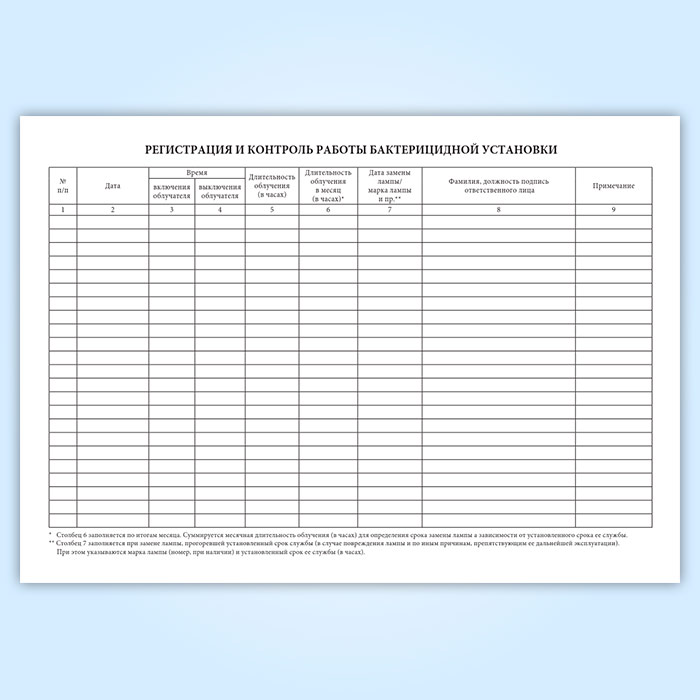 Журнал регистрации и контроля ультрафиолетовой бактерицидной установки (А4) в Сочи купить