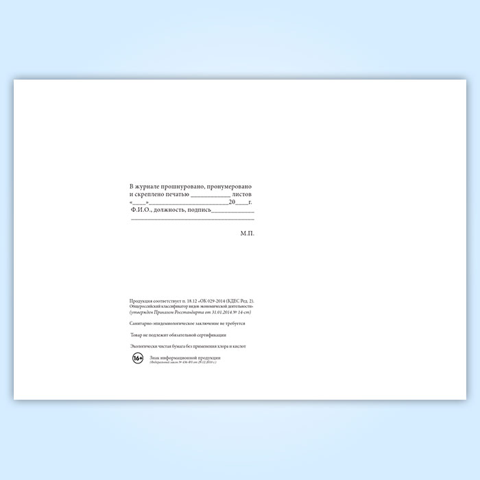 Вы получаете печатную продукцию прошнурованной и c местом для вашей печати в соответствии с действующими нормативными документами: