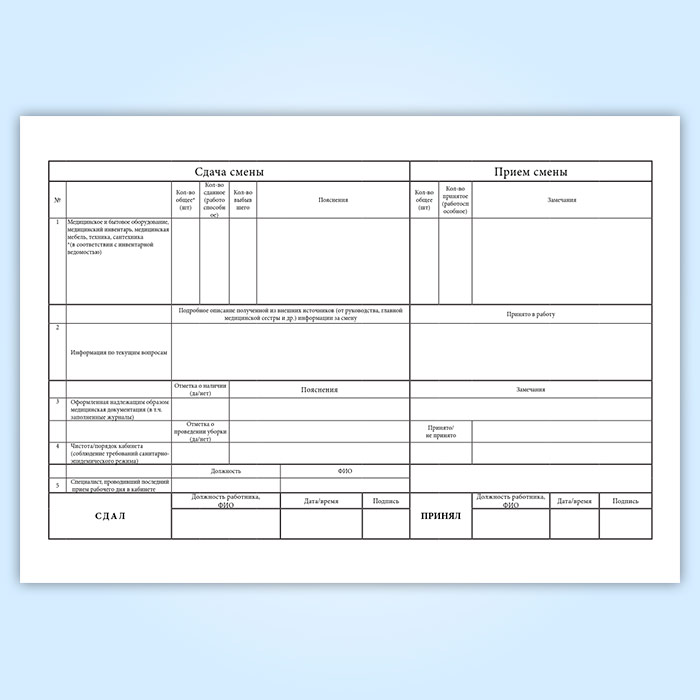 Журнал приема-передачи смен (для мед.персонала) в Сочи купить