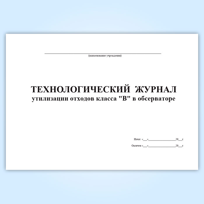 Технологический журнал утилизации отходов класса «В» в обсерваторе в Сочи купить