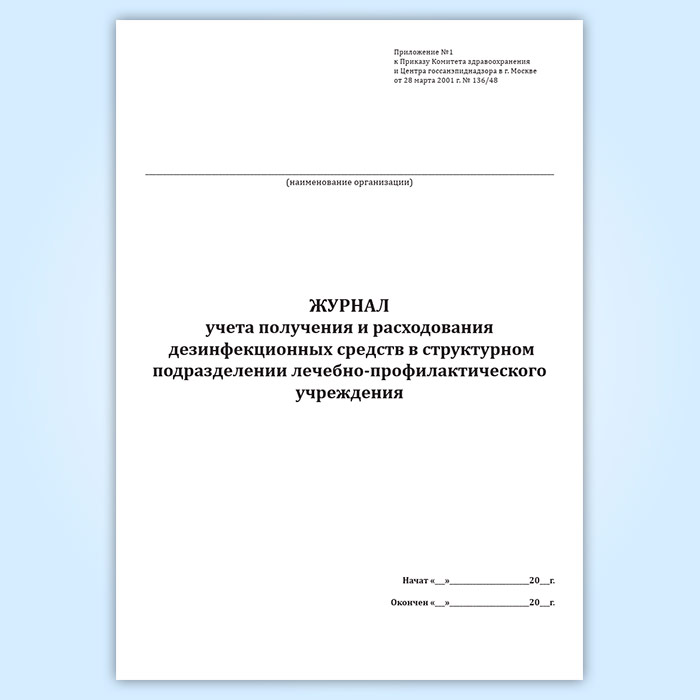 Журнал учета получения и расходования дезинфекционных средств в структурном подразделении лечебно-профилактического учреждения в Сочи купить