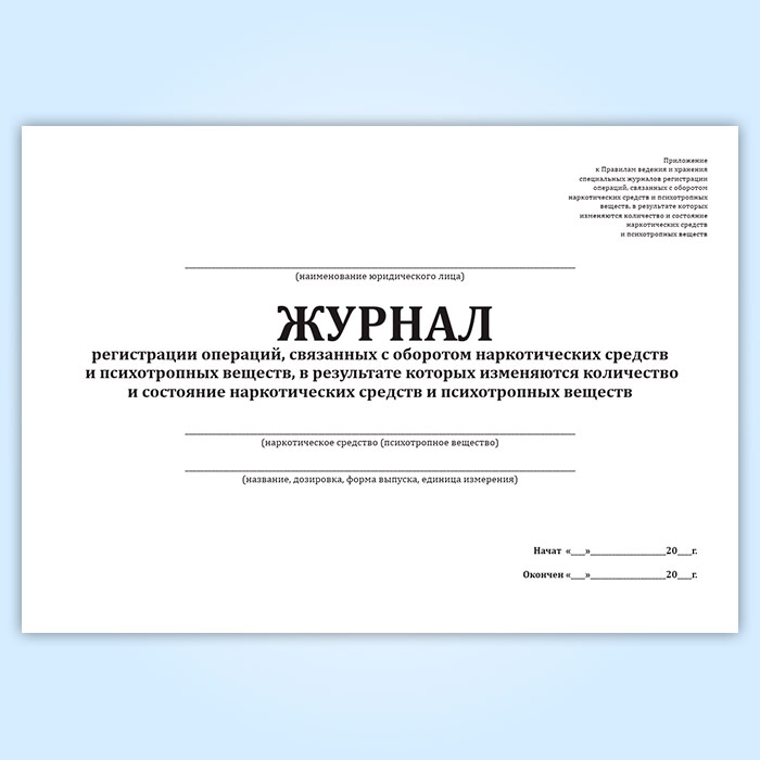 Журнал регистрации операций, связанных с оборотом наркотических средств и психотропных веществ, в результате которых изменяются количество и состояние наркотических средств и психотропных веществ в Сочи купить