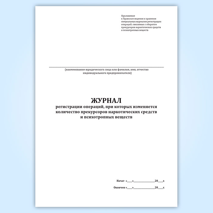 Журнал регистрации операций, при которых изменяется количество прекурсоров наркотических средств и психотропных веществ в Сочи купить
