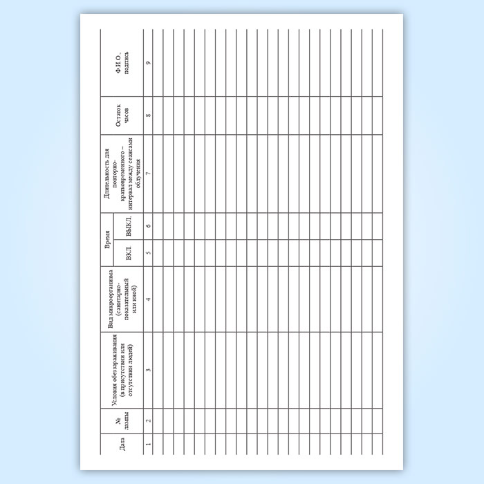 Журнал регистрации и контроля работы бактерицидной установки в Сочи купить