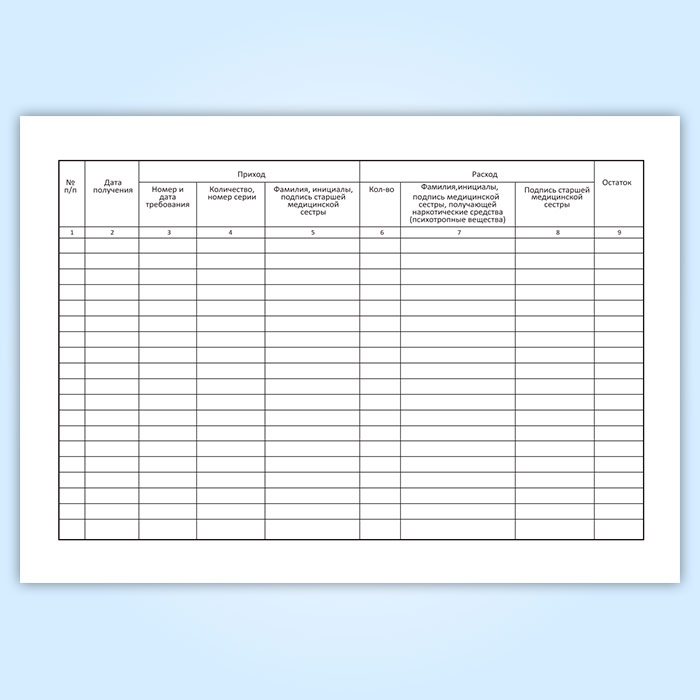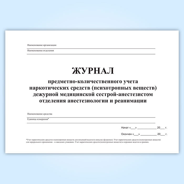 Журнал предметно-количественного учета наркотических средств (психотропных веществ) дежурной медицинской сестрой-анастезистом отделения анастезиологии и реанимации в Сочи купить