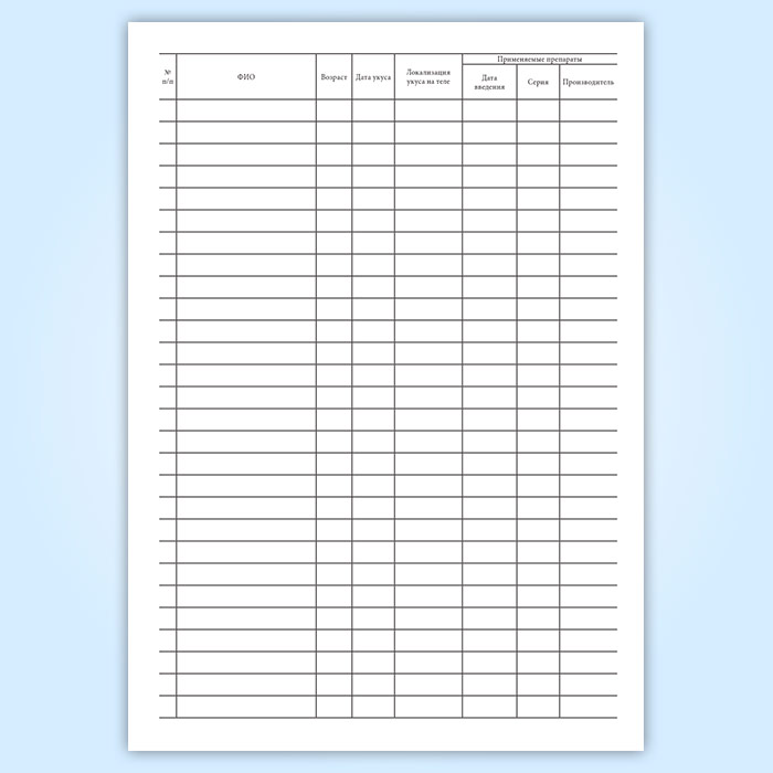Журнал учета покусов людей животными (форма А002) в Сочи купить
