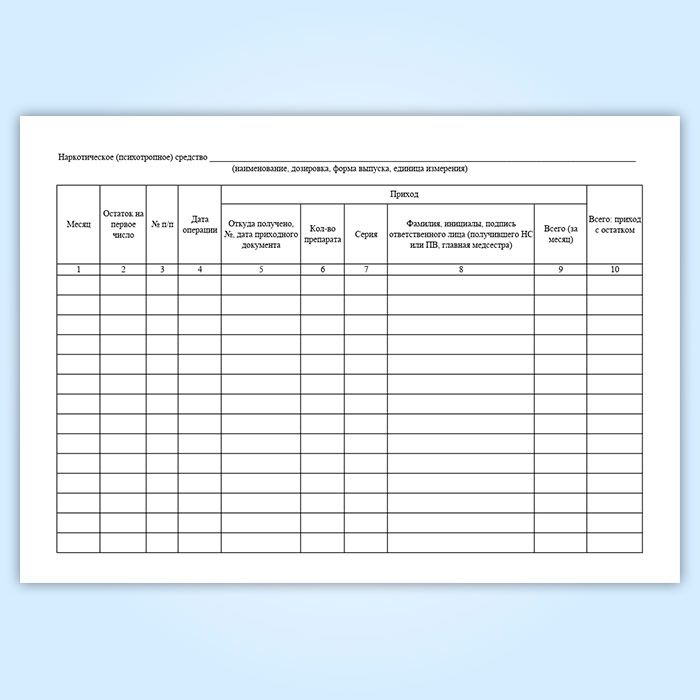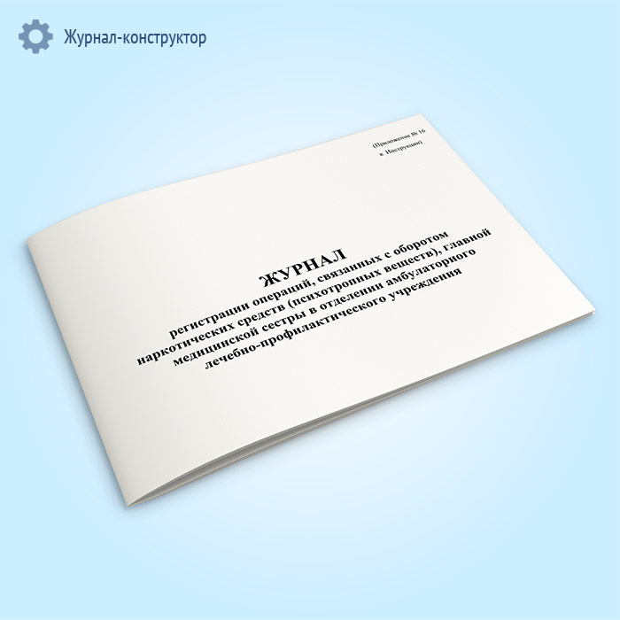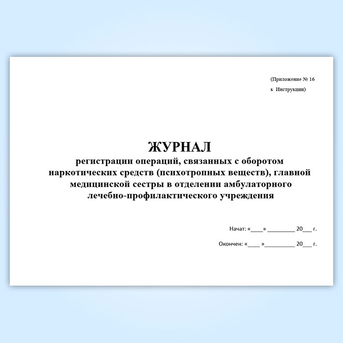 Журнал регистрации операций, связанных с оборотом наркотических средств (психотропных веществ), главной медицинской сестры в отделении амбулаторного лечебно-профилактического учреждения в Сочи купить