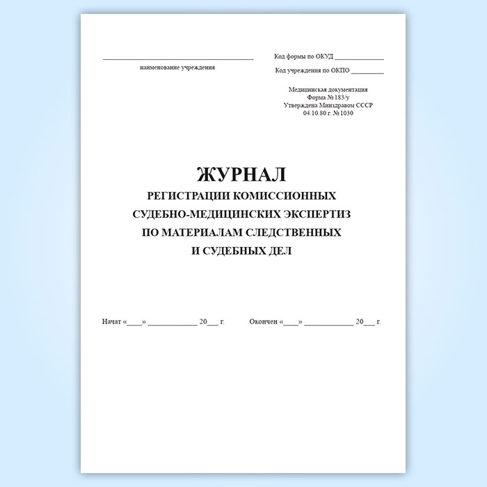 Журнал регистрации комиссионных судебно-медицинских экспертиз по материалам следственных и судебных дел (форма 183/у) в Сочи купить