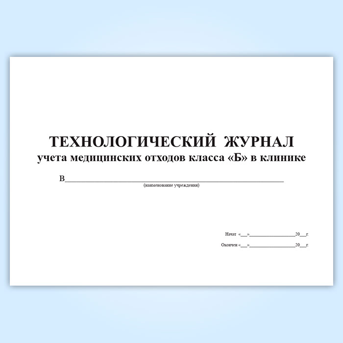 Технологический журнал учета медицинских отходов класса Б в клинике в Сочи купить