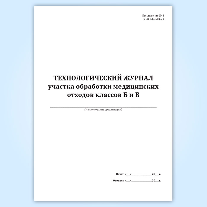 Технологический журнал участка обработки медицинских отходов классов Б и В в Сочи купить