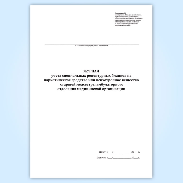 Журнал учета специальных рецептурных бланков на наркотическое средство или психотропное вещество старшей медсестры амбулаторного отделения медицинской организации в Сочи купить