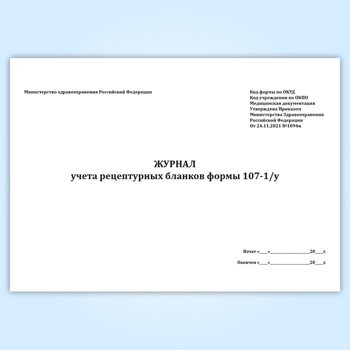 Журнал учета рецептурных бланков формы 107-1/у (новый) (Приказ Минздрава России от 24.11.2021 N 1094н) в Сочи купить