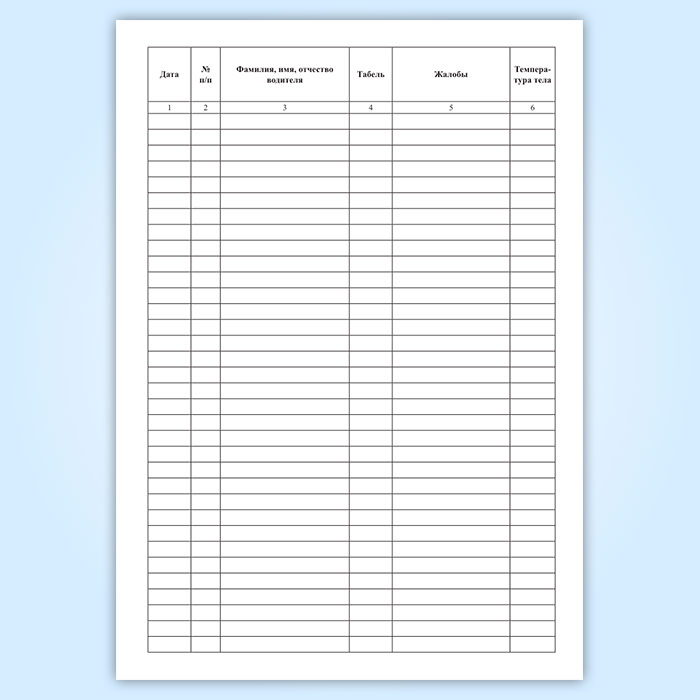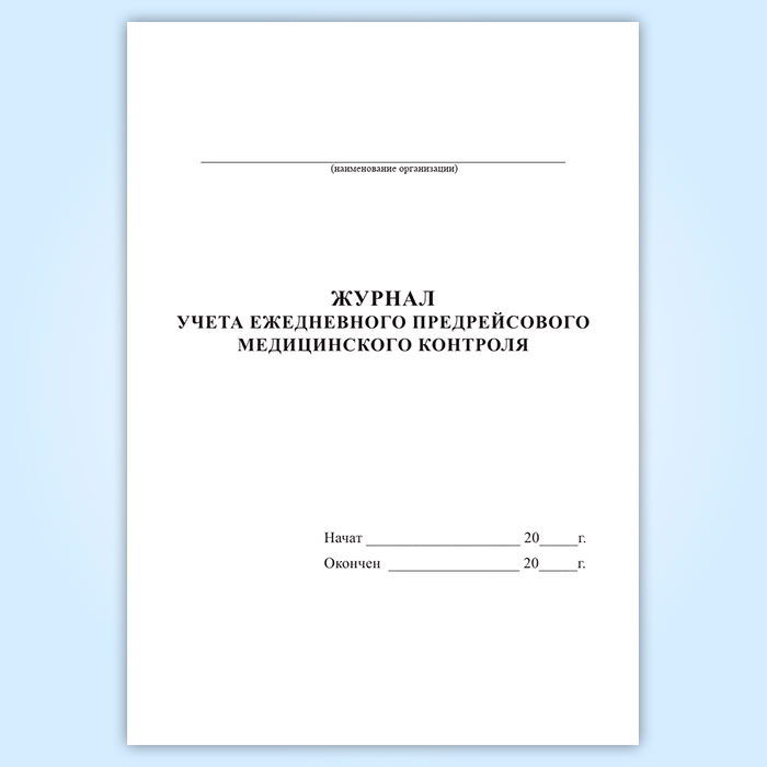 Журнал учета ежедневного предрейсового медицинского контроля (медосмотра) в Сочи купить