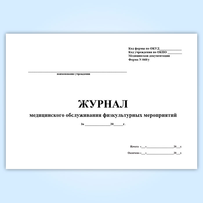 Журнал медицинского обслуживания физкультурных мероприятий (форма 068/у) в Сочи купить