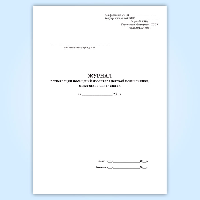 Журнал регистрации посещений изолятора детской поликлиники, отделения поликлиники (форма 059/У) в Сочи купить