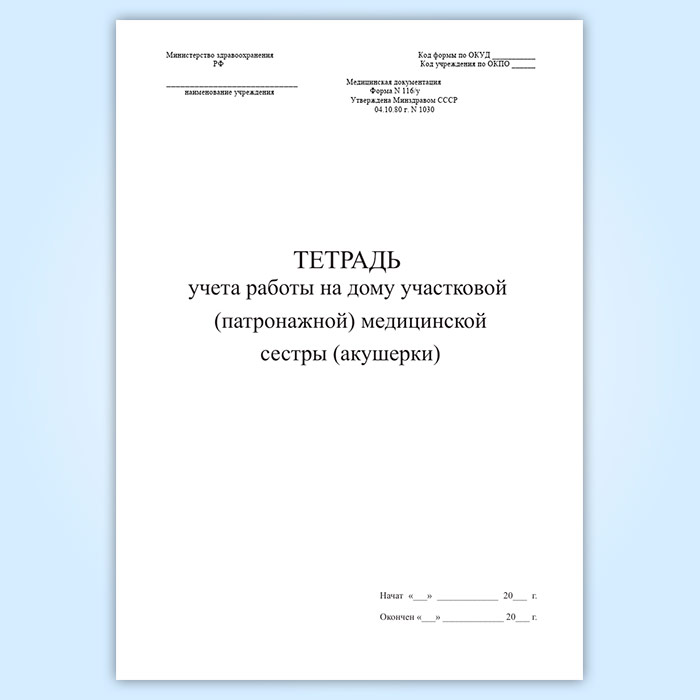 Тетрадь учета работы на дому участковой (патронажной) медицинской сестры (акушерки) (форма 116/у) в Сочи купить