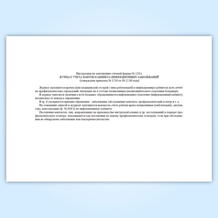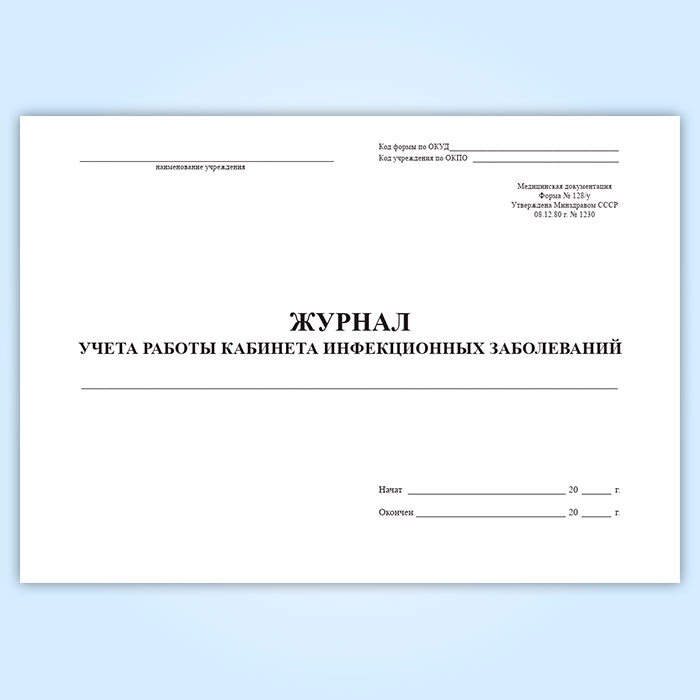 Журнал учета работы кабинета инфекционных заболеваний (форма 128/у) в Сочи купить