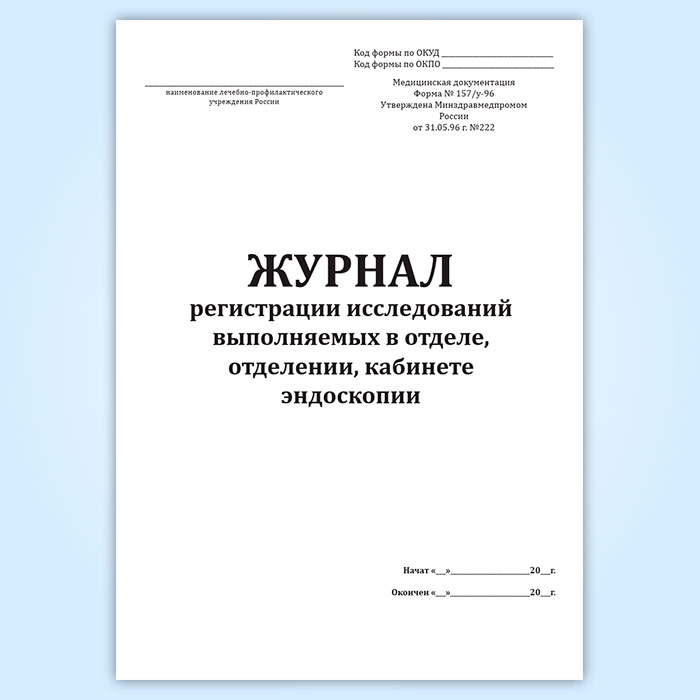 Журнал регистрации исследований выполняемых в отделе, отделении, кабинете эндоскопии (форма № 157/у-96) в Сочи купить