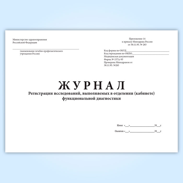 Журнал регистрации исследований, выполняемых в отделении (кабинете) функциональной диагностики (форма 157/у-93) в Сочи купить
