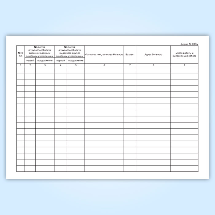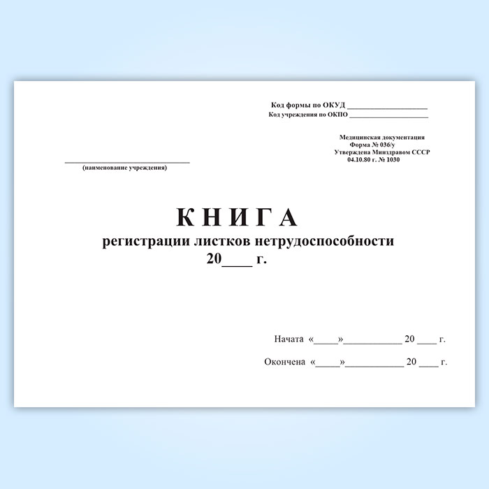 Книга регистрации листков нетрудоспособности (форма 036/у) в Сочи купить