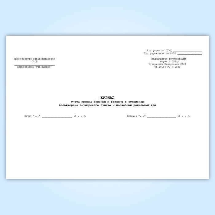 Журнал учета приема больных и рожениц в стационар фельдшерско-акушерского пункта, колхозного родильного дома (форма 098/у) в Сочи купить