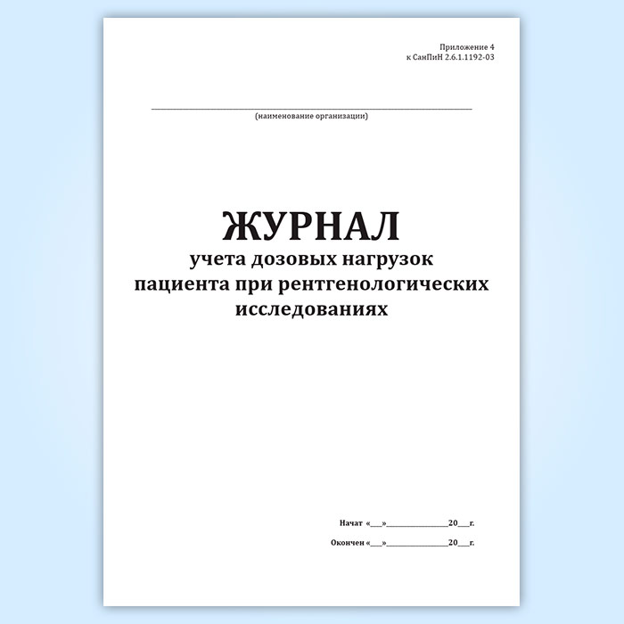 Журнал учета дозовых нагрузок пациента при рентгенологических исследованиях в Сочи купить
