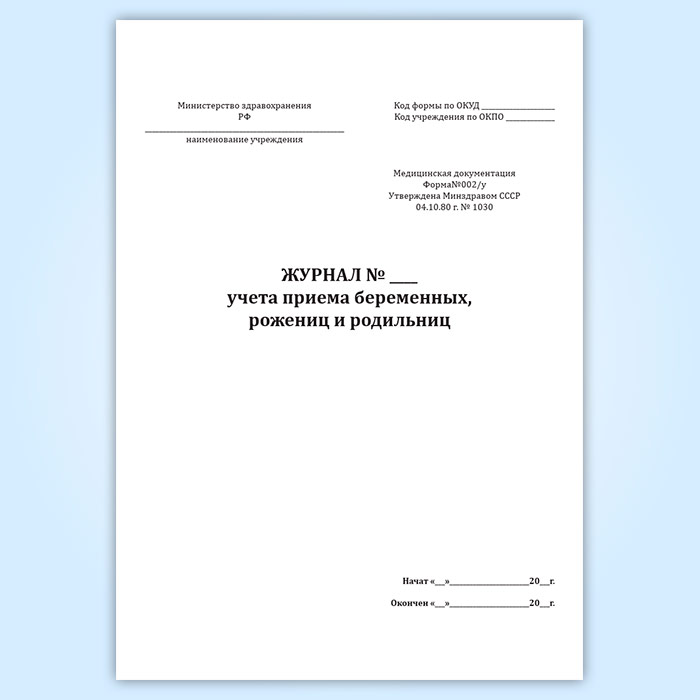 Журнал учета приема беременных, рожениц и родильниц (форма 002/у) в Сочи купить