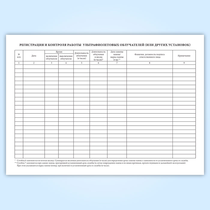 Журнал учета работы ультрафиолетовых облучателей (или других установок) (обсерватор) в Сочи купить