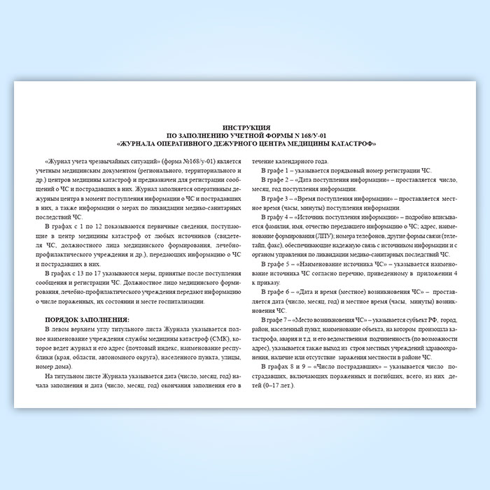 Журнал оперативного дежурного центра медицины катастроф (форма 168/у-01) в Сочи купить