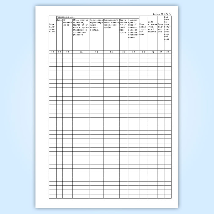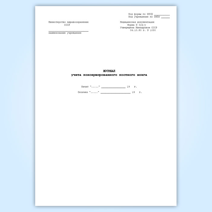 Журнал учета консервированного костного мозга (форма 024/у) в Сочи купить