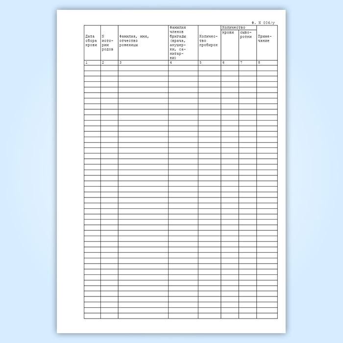Журнал учета сбора ретроплацентарной крови (форма 006/у) в Сочи купить