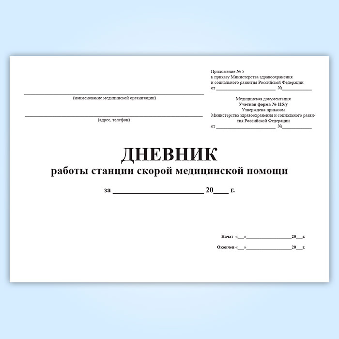 Дневник работы станции скорой медицинской помощи (форма 115/у) в Сочи купить