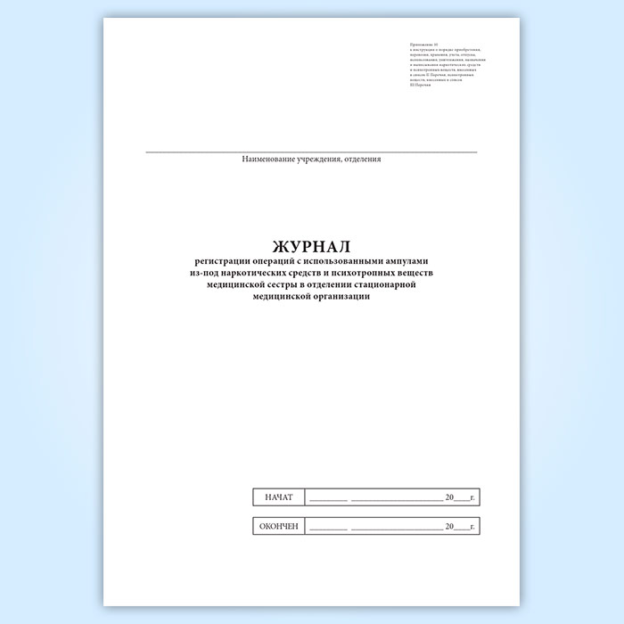 Журнал регистрации операций с использованными ампулами из-под наркотических средств и психотропных веществ медицинской сестры в отделении стационарной медицинской организации в Сочи купить