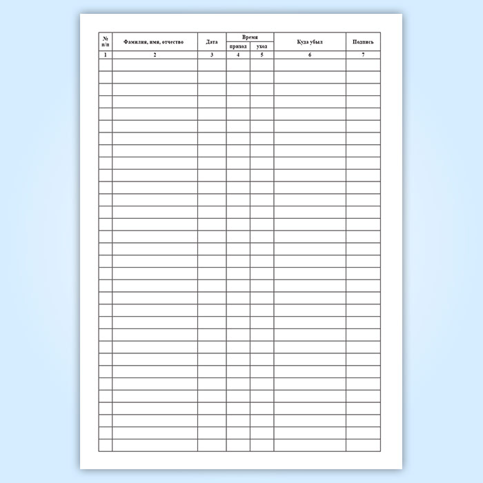 Журнал (табель) прибытия и убытия работников в Сочи купить