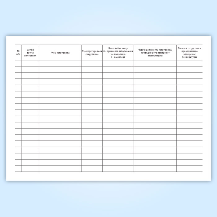 Журнал учета измерения температуры сотрудников (горизонтальный) в Сочи купить
