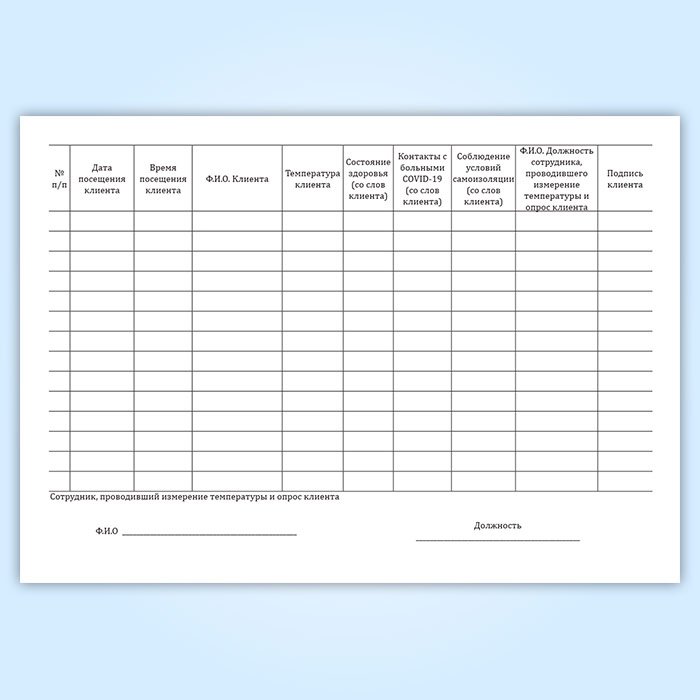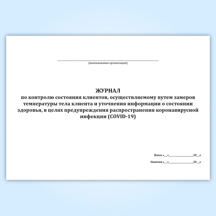 Журнал по контролю состояния клиентов, осуществляемому путем замеров температуры тела клиента и уточнения информации о состоянии здоровья, в целях предупреждения распространения коронавирусной инфекции (COVID-19) в Сочи купить