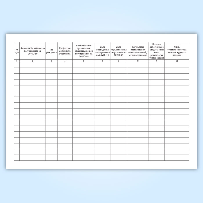 Журнал учета тестирования работников на COVID-19 в Сочи купить