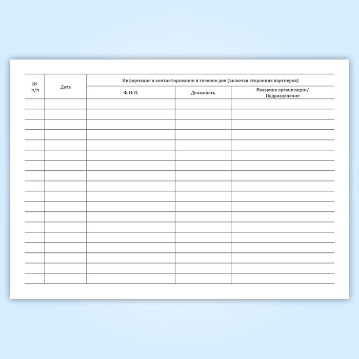 Журнал учета контактов сотрудника (в течение дня) в Сочи купить
