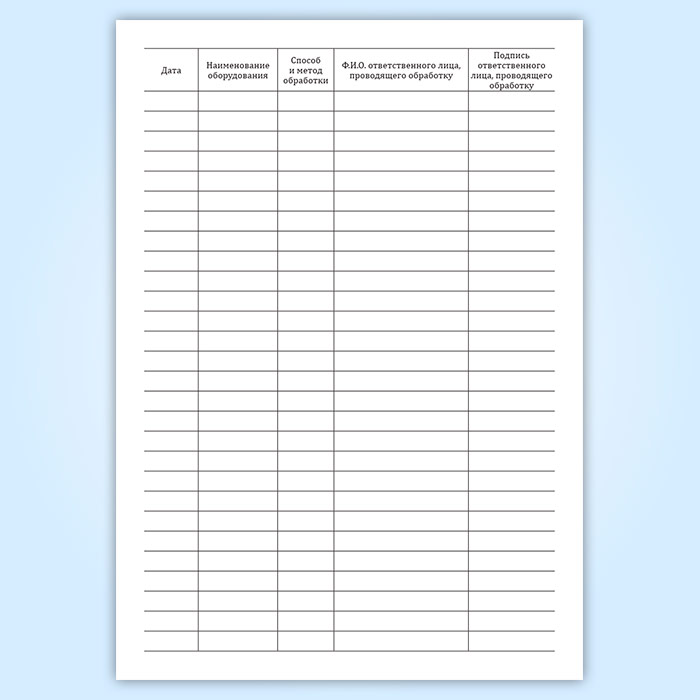 Журнал обработки оборудования в целях предупреждения распространения коронавирусной инфекции (COVID-19) в Сочи купить