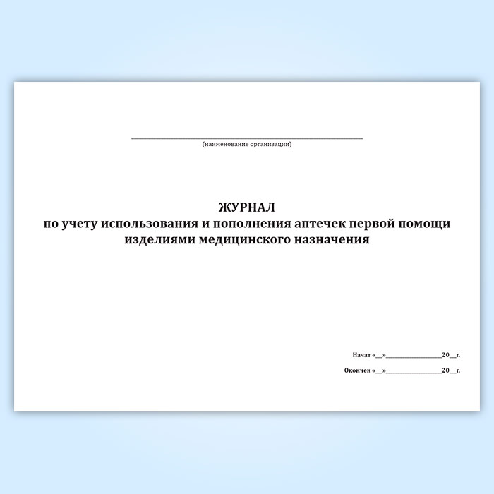 Журнал по учету использования и пополнения аптечек первой помощи изделиями медицинского назначения в Сочи купить