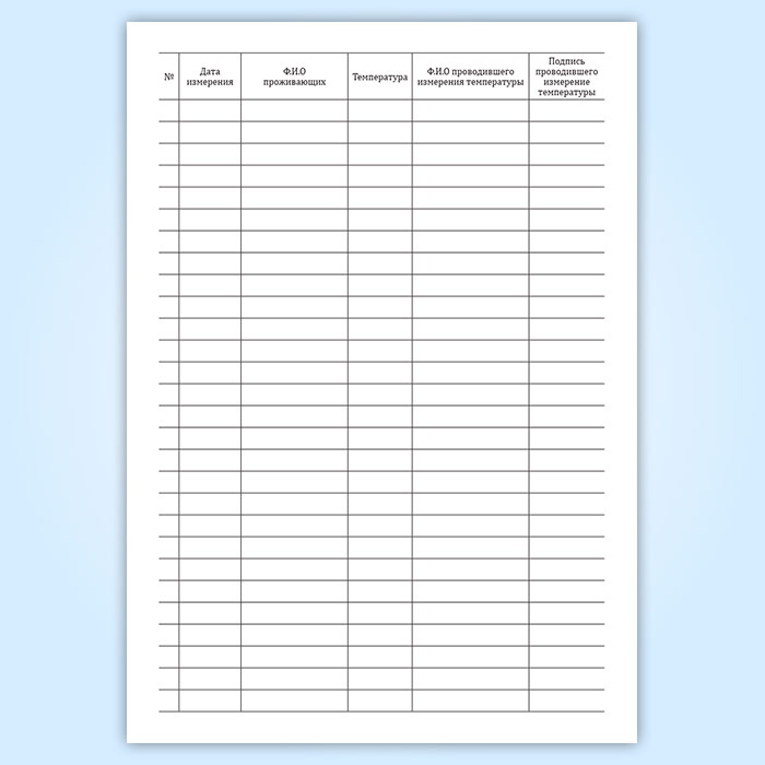 Журнал регистрации измерения температуры проживающих и служащих для профилактики коронавируса в Сочи купить
