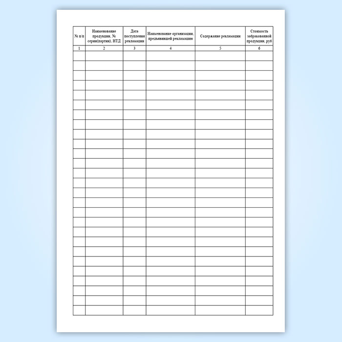 Журнал учета рекламаций (претензий) на продукцию в Сочи купить