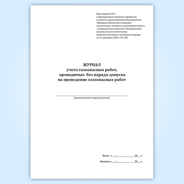 Журнал учета газоопасных работ, проводимых без наряда-допуска на проведение газоопасных работ в Сочи купить