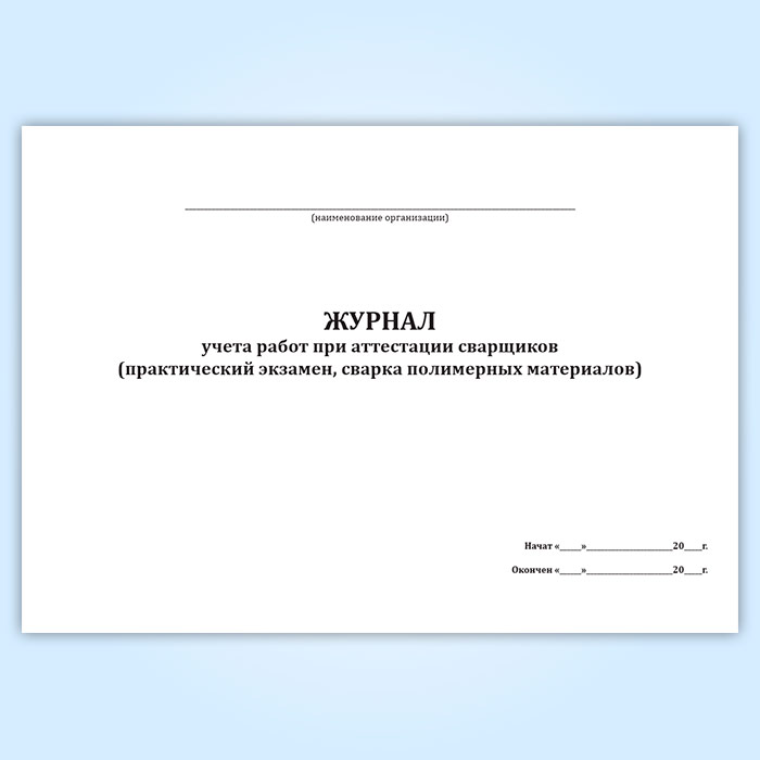 Журнал учета работ при аттестации сварщиков (практический экзамен, сварка полимерных материалов) в Сочи купить